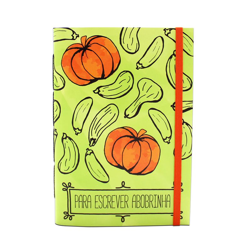 Sketchbook com encadernação manual e uma linda estampa de Abobrinha. Com esse caderninho você vai poder escrever abobrinhas a vontade e com muito estilo.